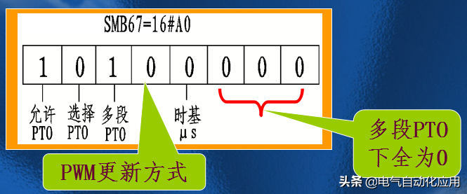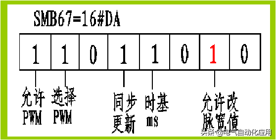 ● 改写控制字节SMB67,将允许改脉宽值位置1 ,其它位不变。