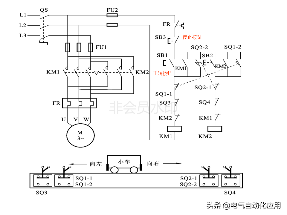 电路图中:SB3—反转按钮—X2—蓝按钮。
