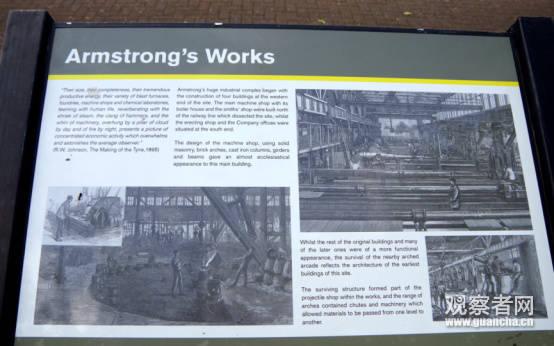 泰恩河岸边的标识牌上介绍当年阿姆斯特朗工厂的盛况