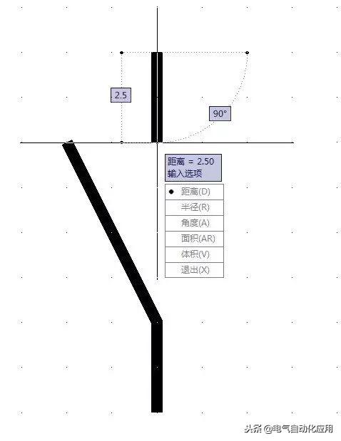 注意看,它上部的垂直线高度是2.5,中间斜线部分的高度是5,下部的垂直线的高度是2.5,图块的宽度也是2.5。线宽当然就是0.25。