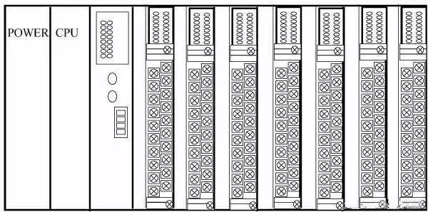 模块式PLC将PLC的各组成部分分别做成若干个单独的模块,如CPU模块、I/O模块、电源模块(有的含在CPU模块中)以及各种功能模块。模块式PLC由框架或基板和各种模块组成,模块装在框架或基板的插座上,如图所示。这种模块式PLC的特点是配置灵活,可根据需要选配不同规模的系统,而且装配方便,便于扩展和维修。大、中型PLC一般采用模块式结构。
