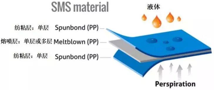SMS无纺布结构示意图制作口罩,原材料纤维全部都是聚丙烯(Polypropylene,简称PP),医用口罩一般简称SMS结构。其中纺粘层是单层,熔喷层根据过滤要求,分为单层或者多层。“熔喷布”俗称口罩的 “心脏”,是口罩中间的过滤层,具有很好的过滤性、屏蔽性、绝热性和吸油性,是生产口罩的重要原料。聚丙烯高熔指无纺布专用料成为口罩的最佳选择,它还可用在一次性手术衣、被单、盖布、液体吸收垫等多个医护用品中。这些材料都来源于中石化、齐鲁石化、镇海炼化、茂名石化等一些化工企业。有了原材料的供应,制作口罩的工序也就没那么复杂了。03 平面口罩生产工序 1)将三层无纺布原料经过机器叠合在一起