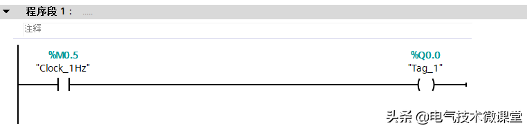 例题:Q0.0外接一个LED发光二极管作为信号指示灯,要求PLC系统上电后LED灯以1Hz频率闪烁。
