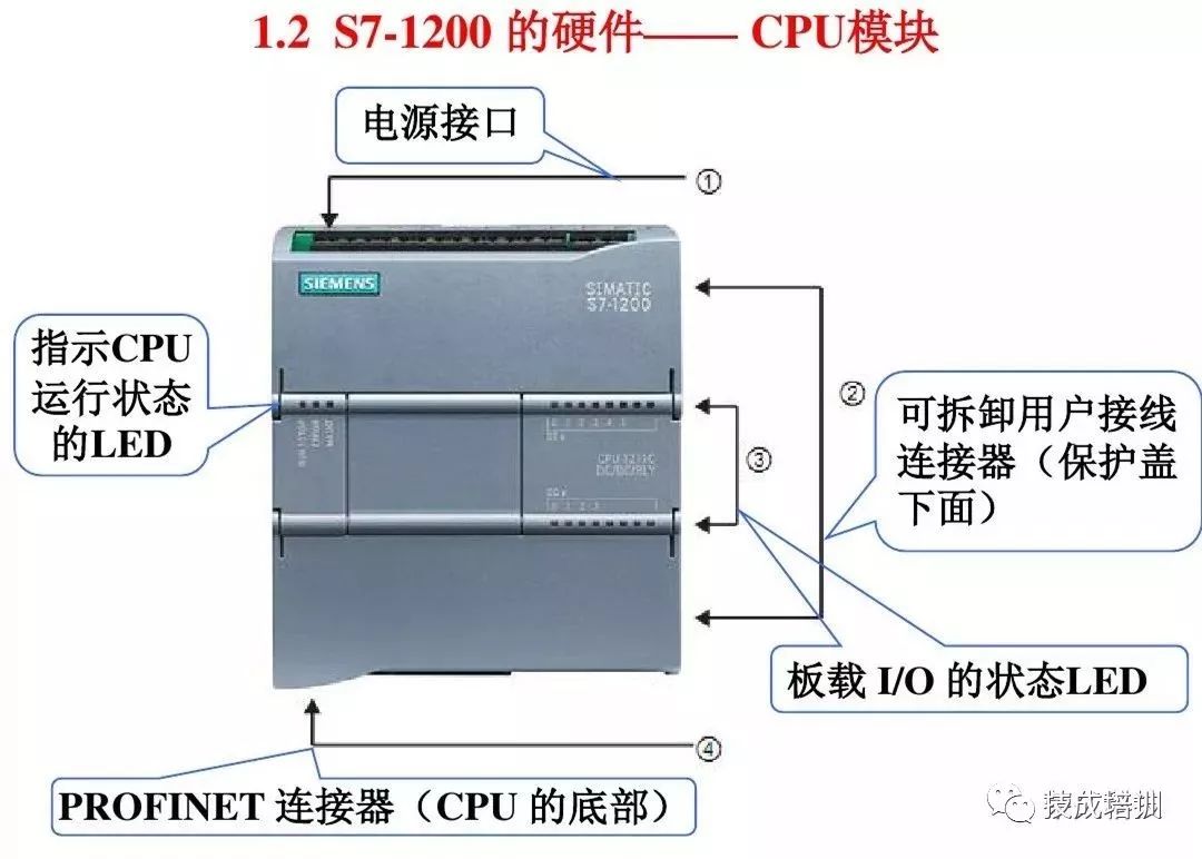 CPU将微处理器、集成电源、输入电路和输出电路组合到一个设计紧凑的外壳中以形成功能强大的PLC。