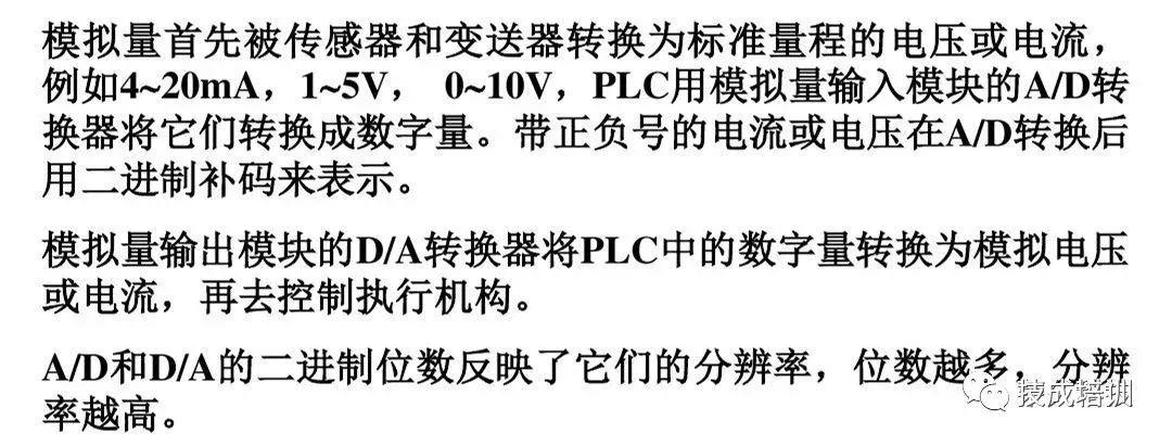 在工业控制中,某些输入量(温度、压力、流量、转速等)是模拟量,某些执行机构(电动调节阀和变频器等)要求PLC输出模拟量信号,而PLC的CPU只能处理数字量。