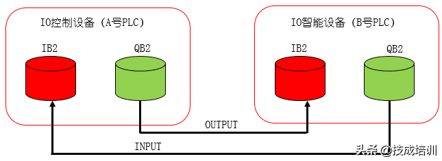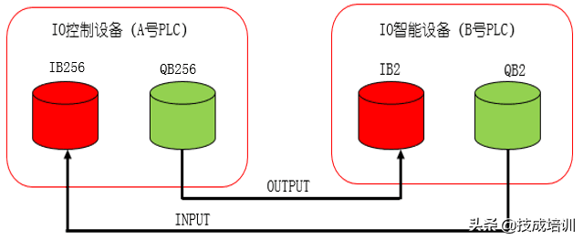 同样我们以用A号PLC的输入控制B号PLC的输出,B号PLC的输入控制A号PLC的输出这样一个简单控制方式为例 来说明如何配置这样的一个通信过程,这里以A号PLC作为控制器,B号PLC作为一台远程的智能设备。