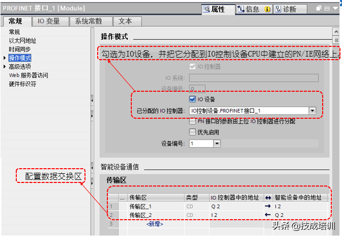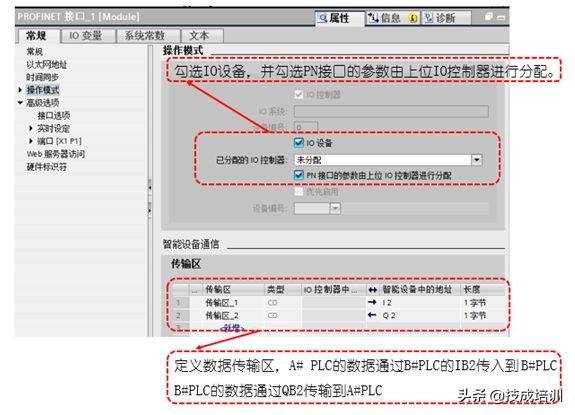 操作模式中参数设置:在操作模式的选项中需要设置操作模式和传输区两部分内容,设置如下所示:
