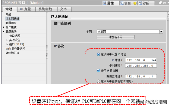 (2)GSD文件添加完后,设置好A号PLC的以太网接口参数并设置好IP地址,保证与B号PLC的IP地址在同一个网段并对网络配置进行组态。