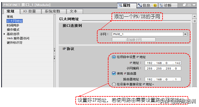 (2)添加完后分别对每个设备的CPU及以太网端口进行参数的设置,这里主要介绍下CPU的以太网端口的参数的设置: