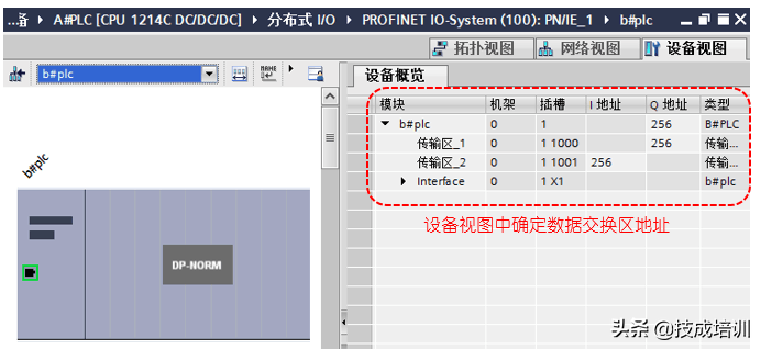 在设备视图界面中切换B#PLC,查看生成的数据交换区,数据交换区如下图示: