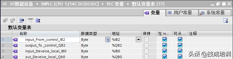 IO智能设备(B号PLC)的变量表及程序: