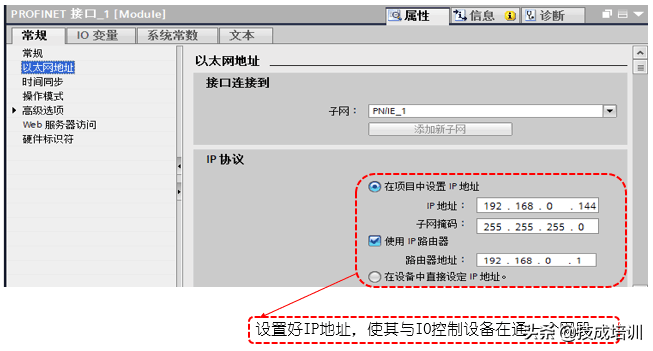 IO控制设备的以太网接口参数设置: