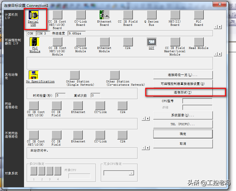 三菱plc与电脑连接时,提示无法与plc通信,为什么啊?请高手指...