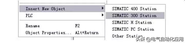 项目屏幕的左侧选中该项目,在右键弹出的快捷菜单中选中Insert New Object插入SIMATIC 300 Station,可以看到选择的对象出现在右侧屏幕上。