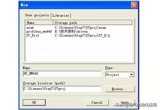 打开SIMatic MANAGER, 通过FILE菜单选择NEW新建一个项目,在NAME栏中输入项目名称,将其命名为DP_MM440,在下方的Storage Location中设置其存储位置。