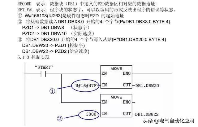 在本例中设定值和控制字可以从数据块DB1中传送,DB1.DBW20设为047E再变为047F后DB1.DBW22中的频率值将输出,状态字和实际值可从DB1.DBW8,DB1.DBW10读出。微信:503660666