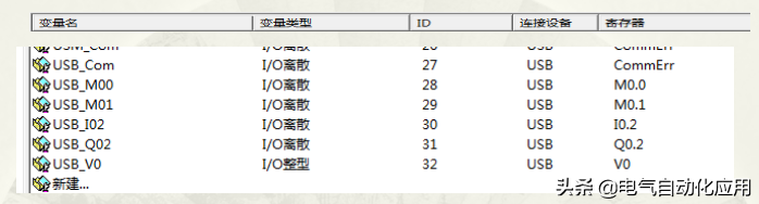 其中,变量USB_Com用来显示组态王与PLC的通信状态,以帮助我们判断是否通信正常。