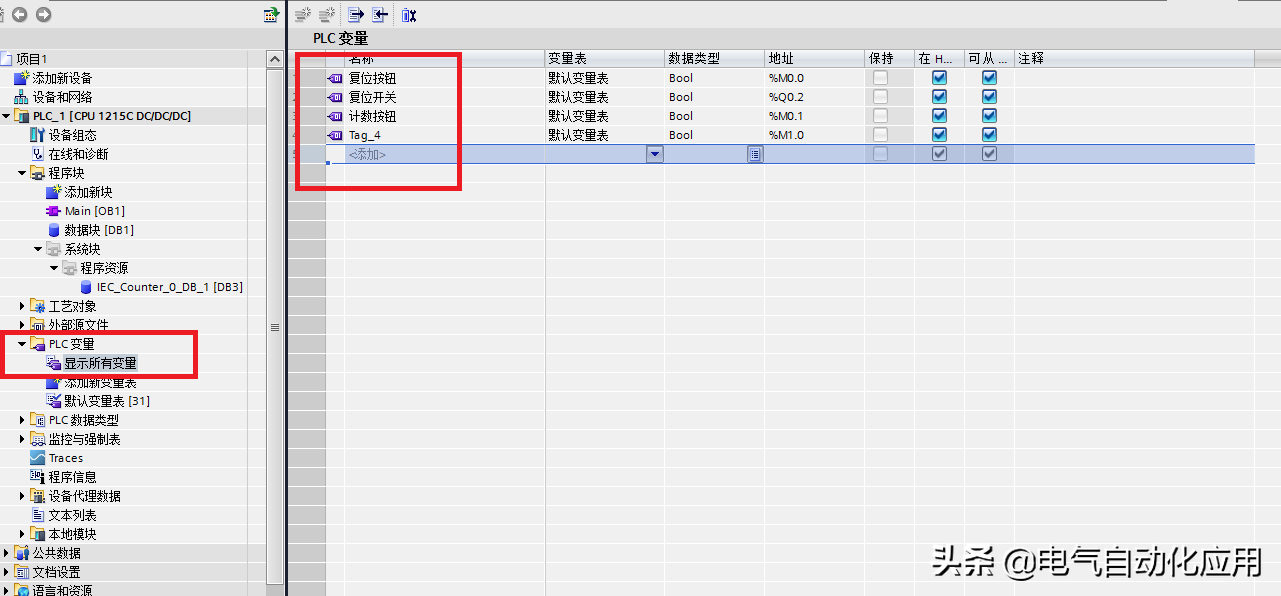 使用同样的方法为按钮M0.1以及指示灯Q0.2建立文本并关联变量。