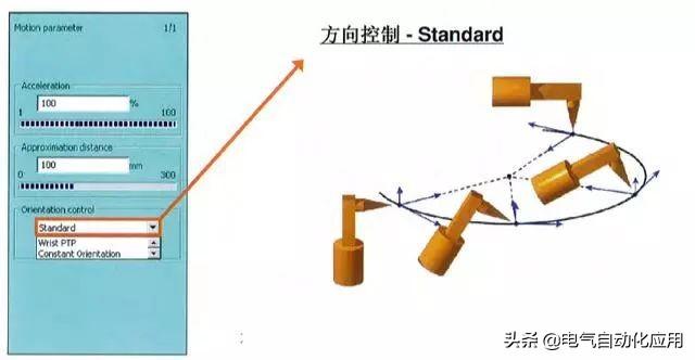 在这个路径运动过程中,工具的方向会熊起始点到结束点连续变化,这个动作的完成取决于工具的姿态。