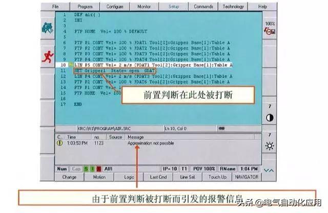 为了能计算路径,例如逼近运动,就必须用到前置判断指针来预先规划路径数据,不仅是运动指令会被执行,而且运算指令和外围控制指令也同样会被执行。
