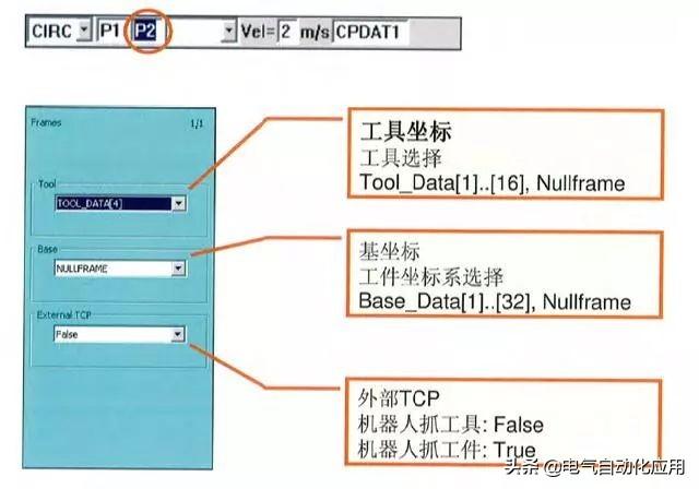 这里TCP或者是工件的参考点,会沿着圆弧向结束点运动,这条路径由起始点,中间点,结束点确定的,运动结束点会是下一个运动的起始点;当一个点作为圆弧中间点的时候,它的工具姿态就会被忽略