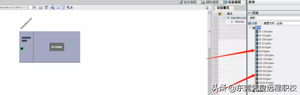 配置接收与发送的数据包,并分别将DI\DO8字节的拖入概览视图中