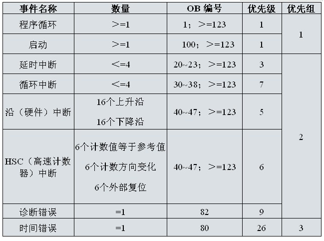 因此,组织块的基本功能是调用用户程序,同时还可以执行自动化系统的启动、循环程序的处理、中断程序的执行以及错误的处理等功能。