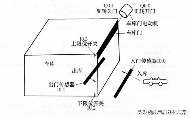 系统要求车库门在车辆进出时能自动打开关闭,车库门控制结构如下图所示。