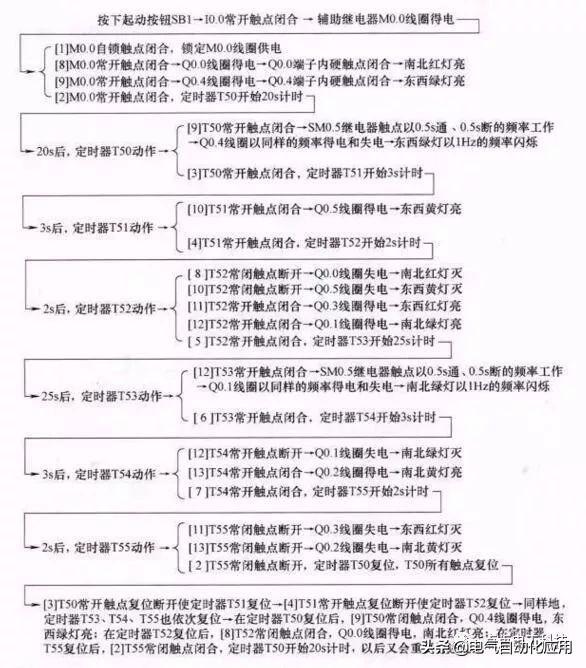 下面对照控制电路来说明梯形图的工作原理: