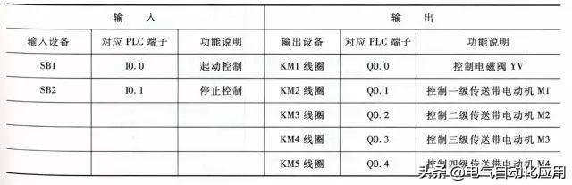 多级传送带控制需用到的输入/输出设备和对应的PLC端子见下表。