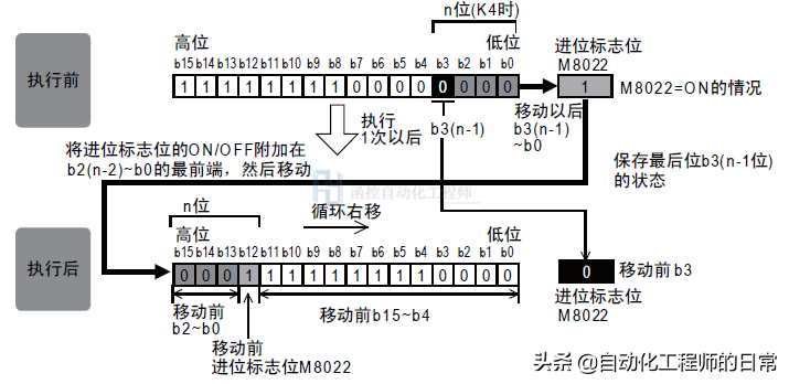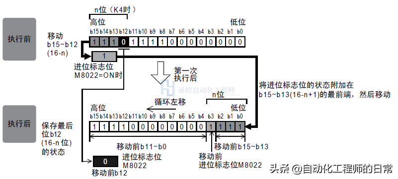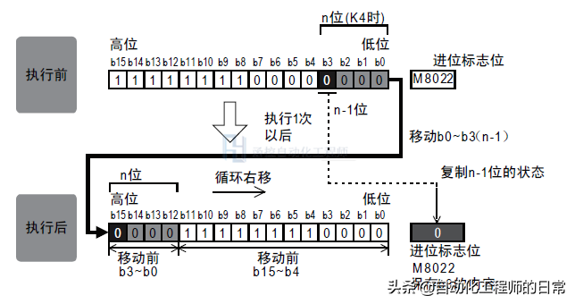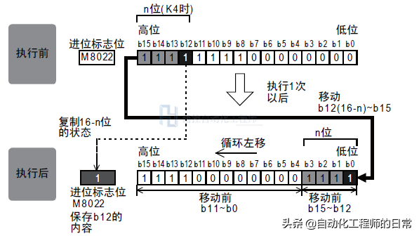 n:循环移动的位数[n≦16(16位指令),n≦32(32位指令)]