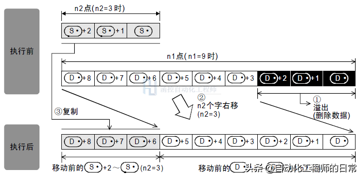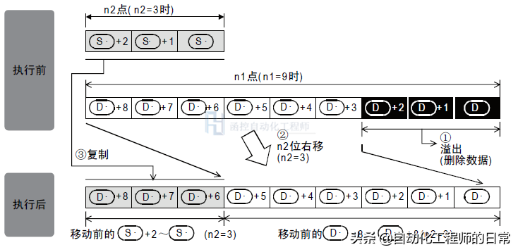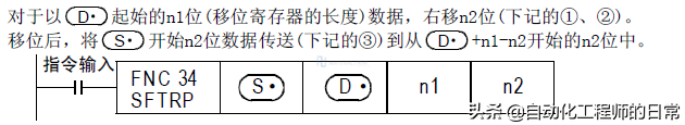 使指定位长度的位软元件每次右移指定的位长度的指令。