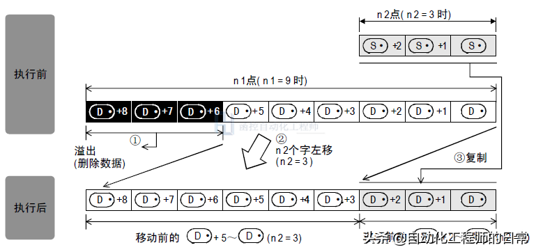 使指定位长度的位软元件每次左移指定的位长度的指令。