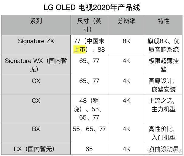LG今年还整理了全新的产品线,之前的LG电视分为B、C、E、W、Z,但B、C、E之间差别并不鲜明,今年LG取消了E系列,CX和BX作为4K走量款,ZX作为8K旗舰,其他系列各具鲜明的设计特色,更加细分人群。