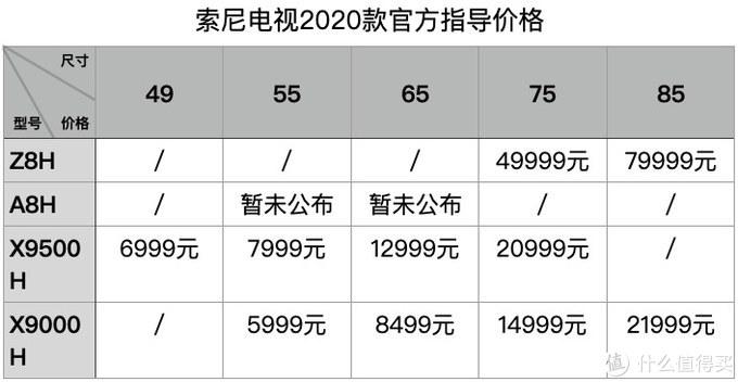相比于LG,不得不说今年的索尼令人失望,升级过于吝啬,人们期盼的9500H竟然扔不配HDMI 2.1!不过也并非全无亮点,索尼电视液晶和OLED两条腿走路,在顶级旗舰上,索尼今年的策略是大尺寸用LCD电视,小尺寸用OLED电视,75、85英寸为液晶屏幕的Z8H系列,55英寸、65英寸采用OLED屏幕A8H系列,但这两个系列,相比去年Z9G和A9G,均没有什么升级,甚至一定程度上有所缩水。芯片没升级、接口没升级,而实际效果嘛,需要看到机器才有定论。现在Z8H已在国内上市,价格如下。