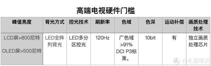 本篇文章是高端电视的选购,高端电视是有性能门槛的 ,首先我们明确选购指南涉及的所有电视均满足下列硬件性能作为基础,具体到产品时,下列指标不再赘述。