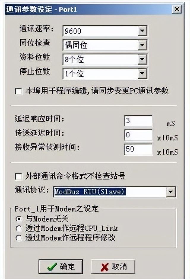 PLC 的编程软件WinProLadder 对通讯口及协议进行设定: