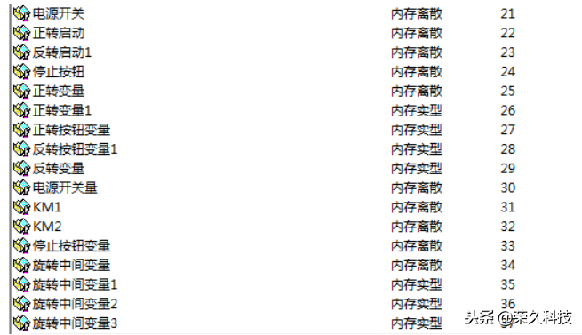 其中开关与PLC相连的变量设置比较特别: