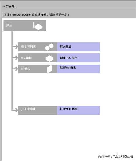 选择“创建新项目”,输入项目名称“test20100510”,单击“创建”按钮则自动进入“入门向导”画面