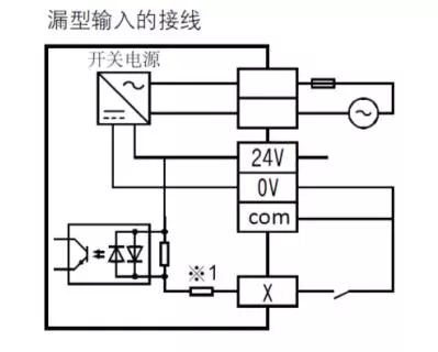 X0‐X27输入为低电平有效。外部传感器(接近开关/光电开关/磁性开关)请选用NPN输出类型。漏型输入电流为5mA。(输入端COM和电源输入0V互通,可以不用连线)