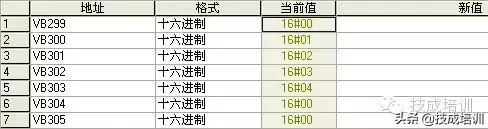 第三步:监控S7-200PLC VB300、VB301、VB302、VB303中的数值是否分别是01、02、03、04。
