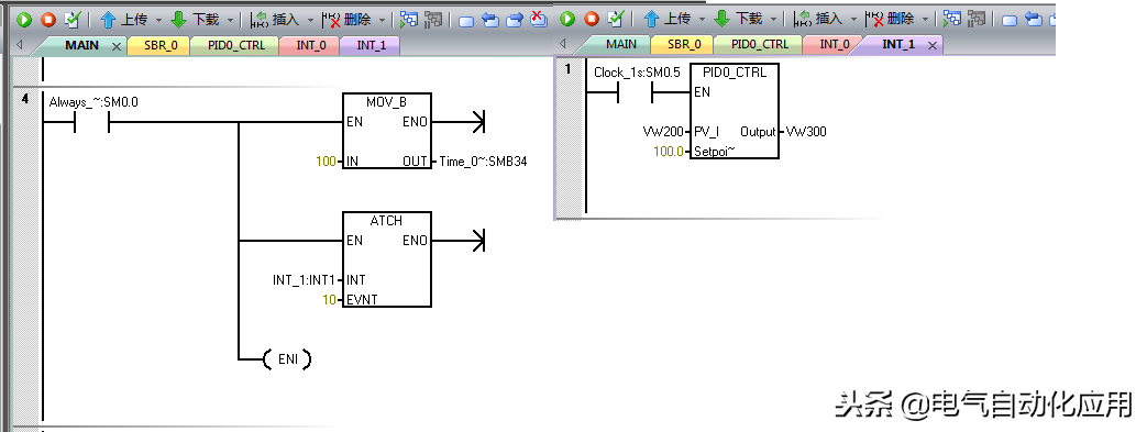 最后就是一些特定程序不需要扫描时间那么快,这种是时间中断,比如说PID的程序必须写到时间中断里。