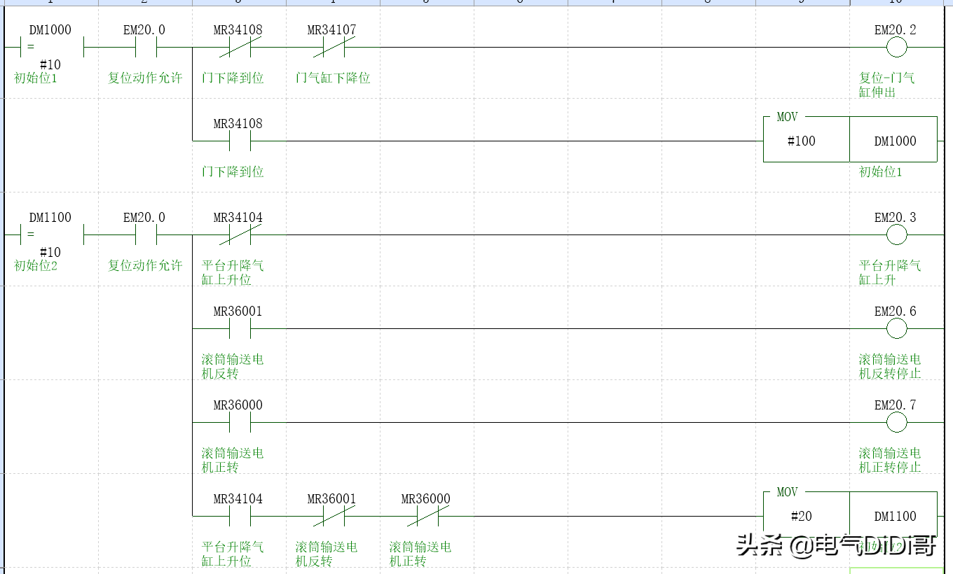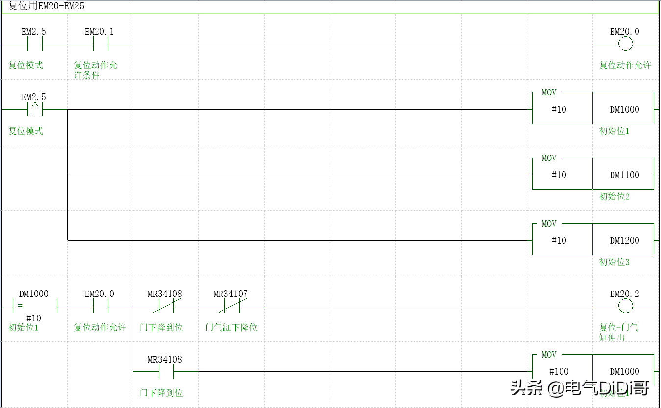 首先,先把DM1000,DM1100,DM1200这三个字附上一个初始值。