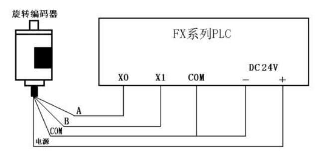 这个编码器属于NPN输出的,输出低电平,AB相输出接入到plc的X0和X1,plc的公共端接入24V。