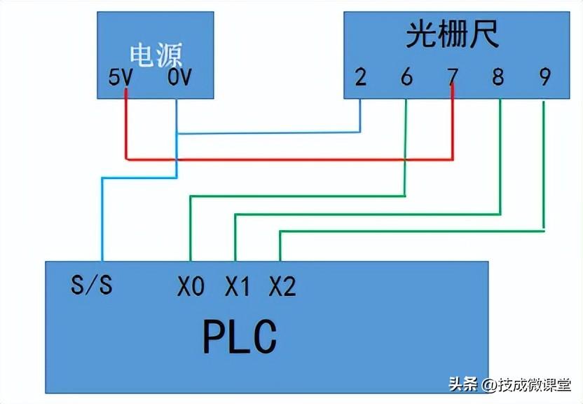 光栅尺输出的信号为高电平,把A、B、Z相信号接到X0、X1、X2这3个点,plc公共端接入负电源。