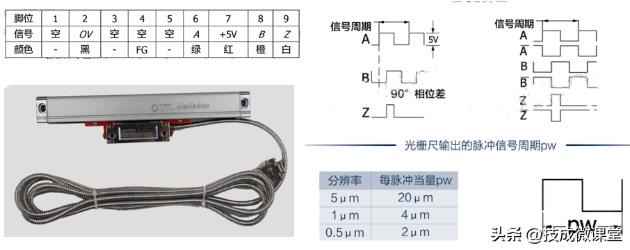 不同类型的旋转编码器,输出脉冲的相位数也不同,有的旋转编码器输出A、B、Z三相脉冲,有的只有A、B相,最简单的只有一个相位。