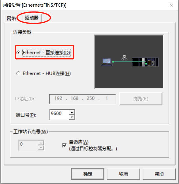 3、PC的IP地址与CP2E-N的地址设置在同一号段