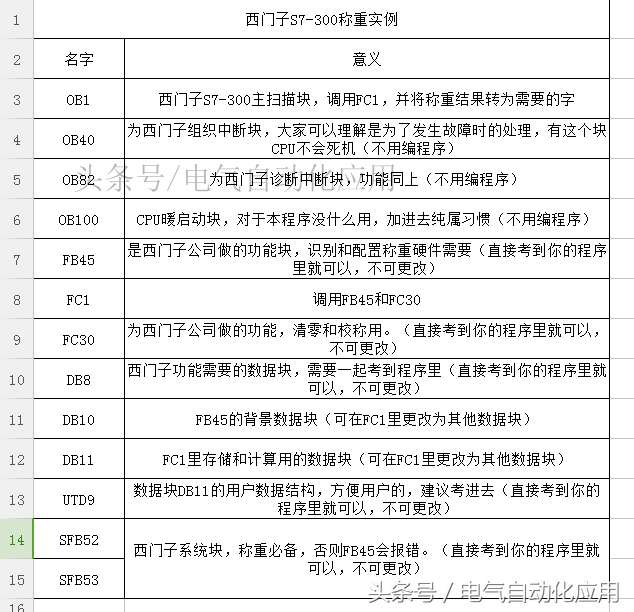 OB1调用FC1,并将称重结果赋给MW200;OB40,OB82,OB100为空程序不用改。FB45,FC30,SFB52,SFB53,DB8,UDT9,DB11需要直接下载进去,不可更改。
