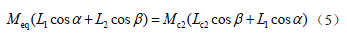 假定转臂角度α 和伸缩臂长度L2 不变,仅变化伸缩臂的角度β,分别标定两个点(β1, Meq1)和(β2, Meq2),在其他任意角度βx 时的标定值Meqx,与这两个标定值的关系为
