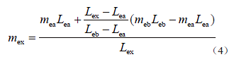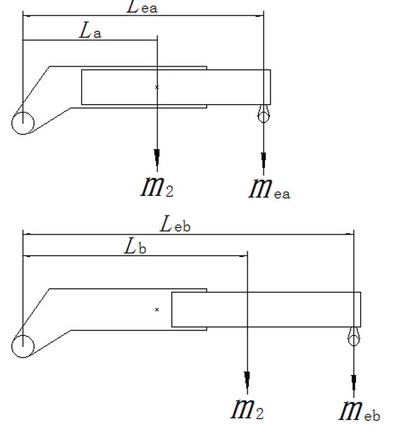 当空载mea 和meb 数值确定后,对于位于Lea 和Leb之间的任意位置Lex,则起重臂自重等效在臂头的质量为